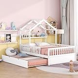 - [Superior Quality] The house bed is constructed with a sturdy pinewood frame that can enhance stability and durability. Slats are included, you don't need to prepare box springs or foundations.